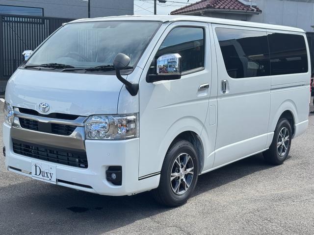 Goo鑑定車トヨタ ハイエースバン ロングスーパーGL ダークプライムS 純正アルミホール パノラミックビューモニターカメラ デジタルインナーミラー フロントドアスカフプレート LEDヘッド 両側電動パワースライド アクセサリーコンセント フェンダーミラー 特別仕様車